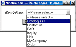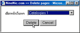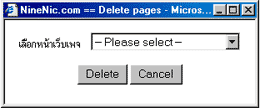 เมื่อคลิ๊กที่ไอคอนนี้แล้ว จะปรากฏหน้าใหม่ขึ้นมาดังรูป ให้ทำการเลือกชื่อหน้าเว็บเพจที่ต้องการลบ แล้วกดปุ่ม Delete หน้านี้จะหายไป และจำนวนหน้าที่ใช้และจำนวนที่ยังใช้ได้จะเปลี่ยนไป
